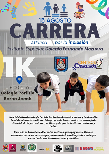 Este evento, organizado por el Colegio Porfirio Barba Jacob en alianza con El Centro Crecer y la Dirección Local de Educación de Bosa, hace parte del compromiso del Plan de Desarrollo Local “Bosa segura y pacífica”, enviando un mensaje contundente a favor de la inclusión, la paz y el respeto por la diversidad.