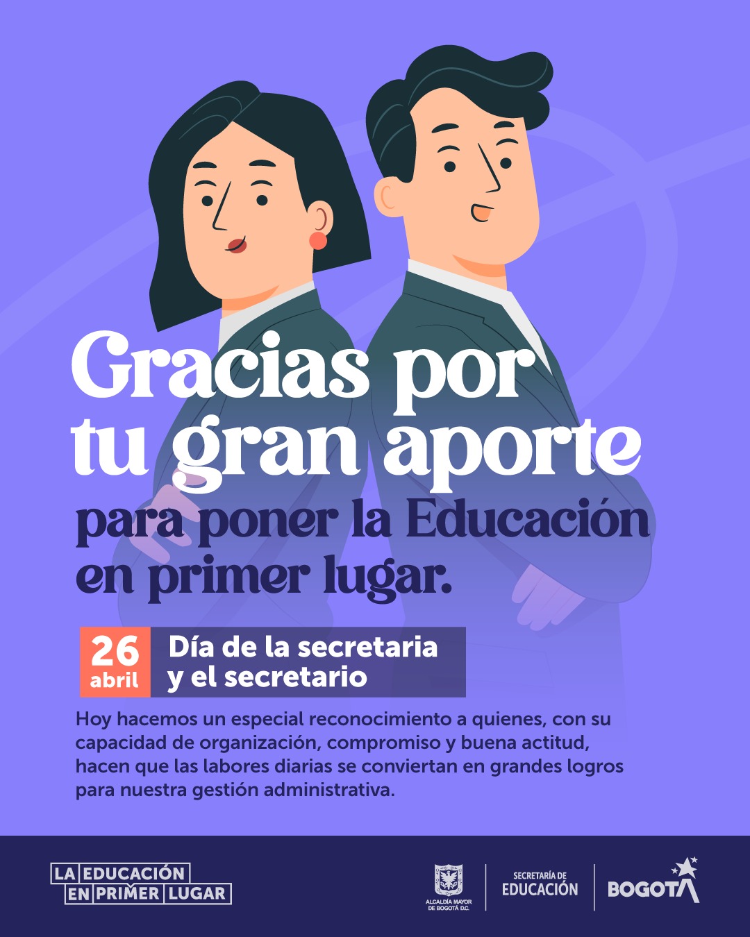 La Secretaría de Educación del Distrito quiere hacer un especial reconocimiento a nuestras y nuestros más de 500 secretarios que con el desempeño de sus funciones contribuyen al progreso y cumplimiento de los objetivos de la Entidad.