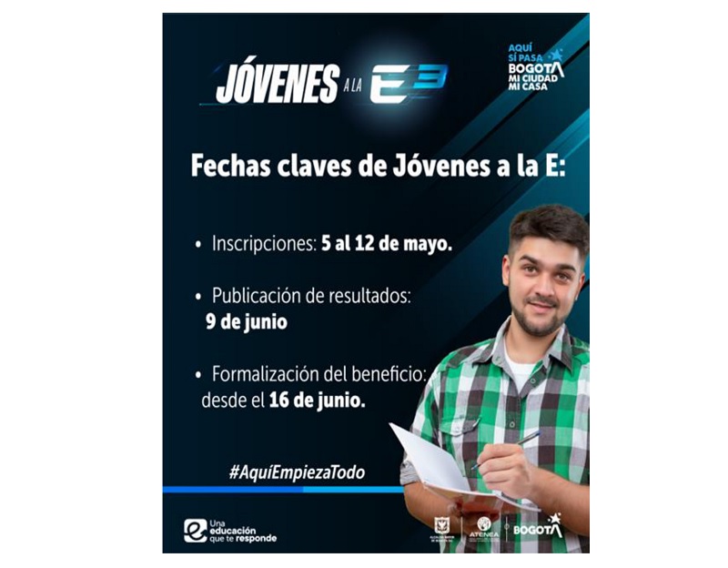 La Agencia Distrital para la Educación Superior, la Ciencia y la Tecnología – Atenea, abrió la tercera convocatoria del programa “Jóvenes a la E”, que beneficiará a 3 mil bachilleres con becas para la educación superior en instituciones privadas, públicas y el Sena. ¡Comparte esta información!
