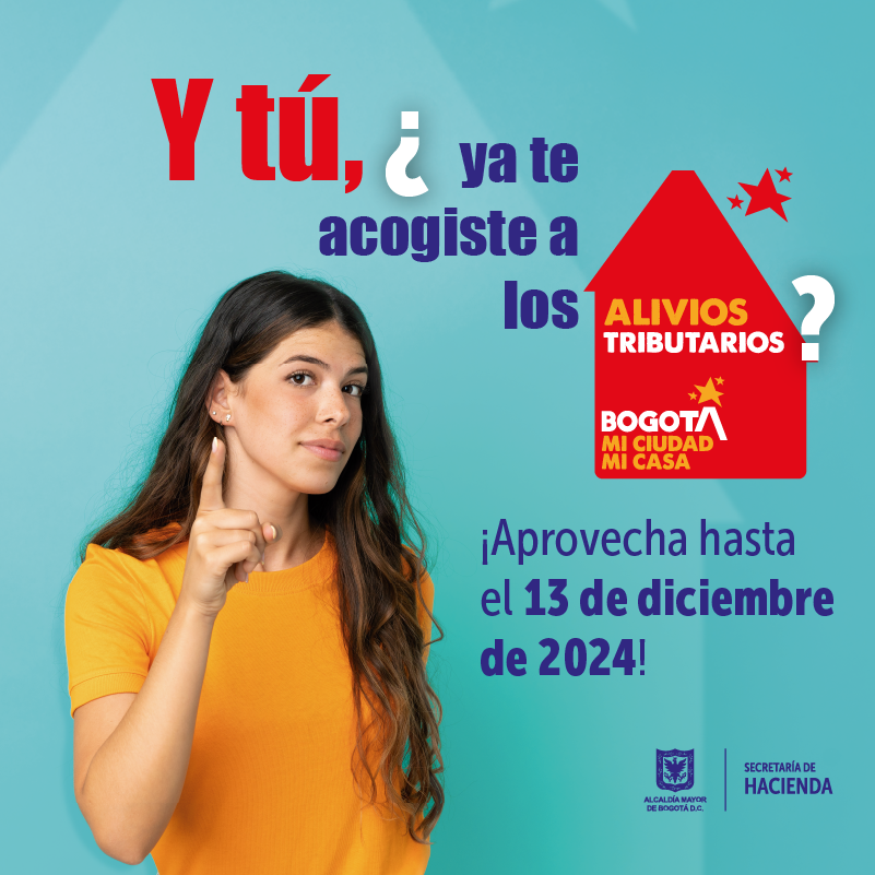 La Secretaría de Hacienda y la Alcaldía de Bogotá recuerdan a la ciudadanía, que tienen plazo hasta el 13 de diciembre para acogerse a los alivios tributarios.
