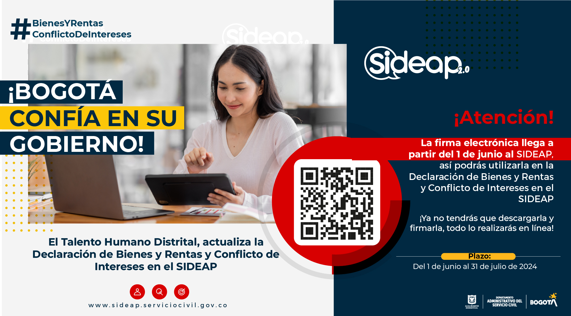Atención servidoras y servidores públicos administrativos, docentes, directivos docentes y colaboradores de la SED: desde el 1 de junio y hasta el 31 de julio de 2024 hay plazo para cumplir con este deber. Además, entérate: ¡ahora la firma será electrónica!