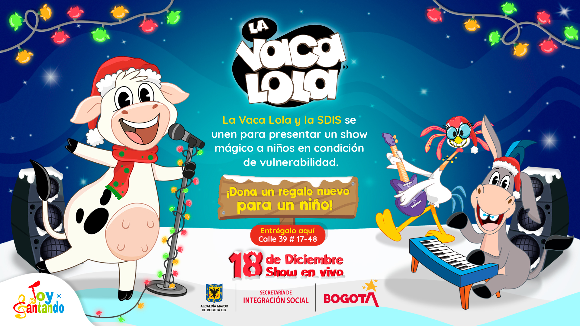 El 18 de diciembre será el gran show de la Vaca Lola en la Alcaldía Mayor de Bogotá. Los regalos se llevan a la Subdirección Local de Teusaquillo Calle 39 17-48.