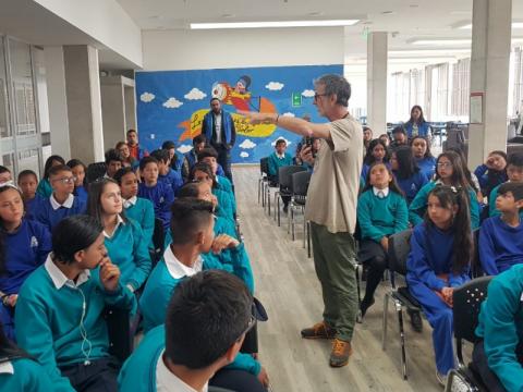 La biblioteca fue el mejor escenario para que los niños y jóvenes demostrarán su interés por la lectura, la escritura y la oralidad y formaran parte de la Feria Internacional del Libro de Bogotá, que este año llevó 10 autores internacionales a igual número de colegios oficiales de la ciudad como parte de la agenda de ‘FILBo en la ciudad’, que recorre la capital con más de 60 eventos entre conversatorios, encuentros y otras actividades culturales.