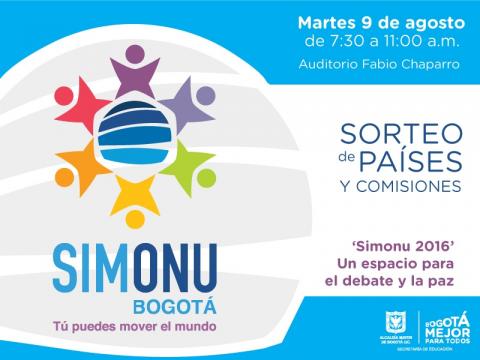 Continúan los preparativos para ‘Simonu 2016’. Este martes 9 de agosto será el sorteo de países y comisiones entre todos los colegios de Bogotá inscritos a la simulación de las Naciones Unidas más grande de América Latina.