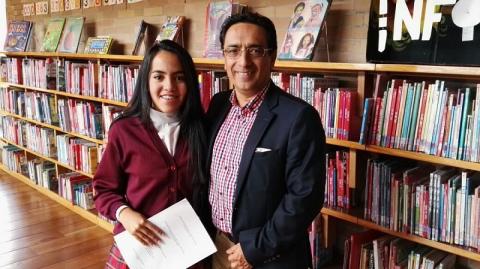 María Angélica Gómez, estudiante de 9º del colegio Magdalena Ortega, obtuvo el primer lugar en la tipología textual ‘Crónica’ con su escrito ‘El lado humano de la muerte’.Para esta estudiante escribir es una de sus pasiones y el concurso le permitió, no solo reafirmar su amor por las letras, sino también, despertar el interés por la investigación: “al participar conocí cosas que no sabía de Bogotá, quiero seguir escribiendo y hacerlo cada vez mejor”.
