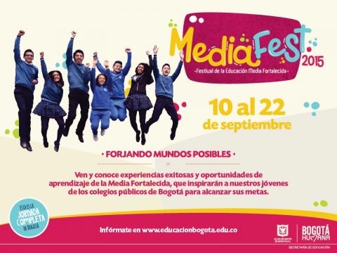 De esta manera, ‘Mediafest: Forjando mundos posibles’, es un evento recoge los avances de las experiencias pedagógicas que, por más de una década, la educación pública de Bogotá ha venido consolidando en los colegios distritales de la ciudad a través de proyectos como ‘Articulación de la Educación Media con la Educación la Superior’, ‘Educación Media Especializada’ y la apuesta vigente ‘Educación Media Fortalecida y Mayor Acceso a la Educación Superior’ y que hoy presenta logros concretos a la ciudad: