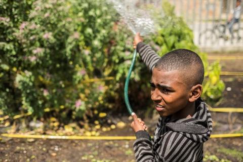 En un colegio oficial, niñas, niños, docentes y padres de familia trabajan la tierra con sus propias manos para obtener frutas y hortalizas. Un proyecto de agricultura urbana auto-sostenible que transformó a la comunidad del barrio Potreritos, en la localidad de Bosa.