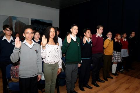En junio, los contralores estudiantiles elegidos gracias al mecanismo del Gobierno Escolar, tomaron posesión de sus cargos frente a la Secretaría de Educación del Distrito (SED), el Instituto Distrital de Participación y Acción Comunal (IDPAC) y la Contraloría Distrital de Bogotá en el Salón Presidente del Instituto Distrital de Recreación y Deporte (IDRD).