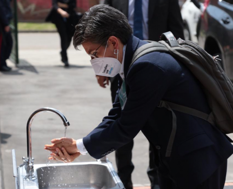 “Este es un colegio que se está preparando para retornar a la presencialidad. Vimos que todas las zonas comunes, pasillos, aulas y baños ya están demarcados, señalizados y tienen buena ventilación. Además, los docentes y coordinadores han estructurado un modelo bastante interesante para garantizar el distanciamiento físico”, señaló la alcaldesa Claudia López Hernández.