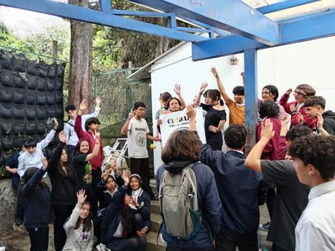 Más de 120 estudiantes con sus docentes participaron en el lanzamiento del mural del Colegio El Verjón, que capturó las voces y preocupaciones de las y los estudiantes sobre el clima escolar.