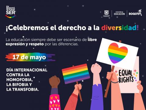 Este lunes 17 de mayo, la Secretaría de Educación se une a la conmemoración del 'Día Internacional contra la homofobia, la bifobia y la transfobia' y expresa su compromiso para que niñas, niños y jóvenes gocen de una experiencia plena de derechos en las aulas.