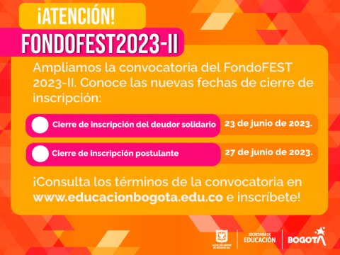 Pensando en las y los jóvenes de Bogotá, la Secretaría de Educación del Distrito amplió hasta el 27 de junio el plazo para el cierre de inscripciones a la convocatoria del fondo FEST que permite acceder a créditos condonables para educación superior.