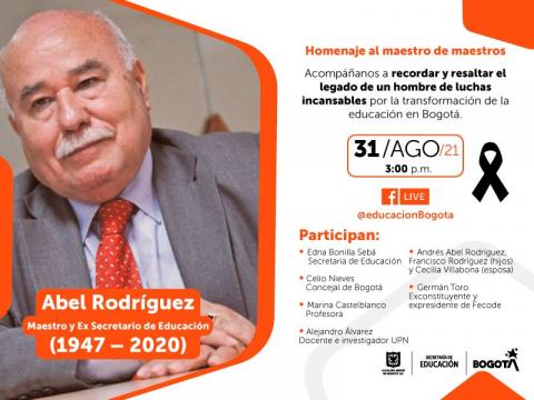 Este 31 de agosto, conéctese al homenaje que rendirá la Secretaría de Educación del Distrito a Abel Rodríguez, el ‘maestro de maestros’, quien entregó su vida a una lucha incansable para transformar la educación de Bogotá y del país.