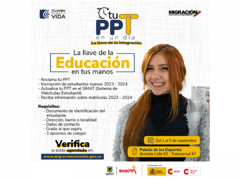 La Secretaría de Educación del Distrito estará presente con toda su oferta de servicios en la jornada masiva que se realizará en el Palacio de los Deportes de Bogotá del 1 al 5 de septiembre, con el propósito prestar una atención integral a las familias migrantes provenientes de Venezuela.