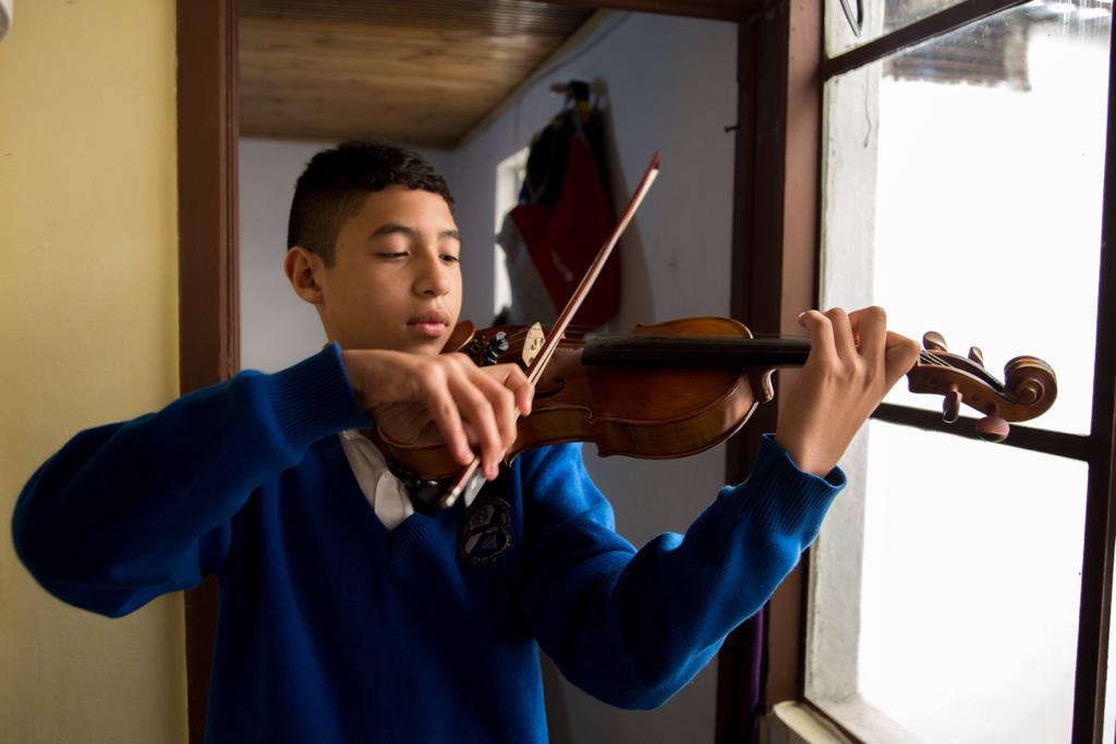 Manuel, el genio que toca violín, teclado, clarinete y guitarra y estudia en un colegio del Distrito