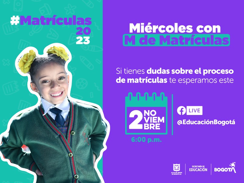 Si tienes preguntas sobre cupos escolares, te invitamos a ‘Miércoles con M de Matrículas: ¡conéctate al Facebook Live!’