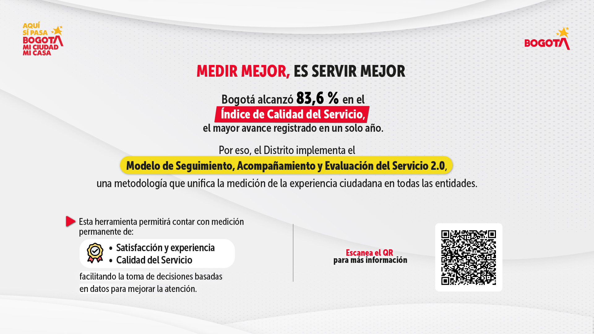 El Modelo de Seguimiento, Acompañamiento y Evaluación del Servicio 2.0 es la herramienta oficial y unificada de medición de la calidad del servicio en Bogotá sobre los trámites y servicios del Distrito.