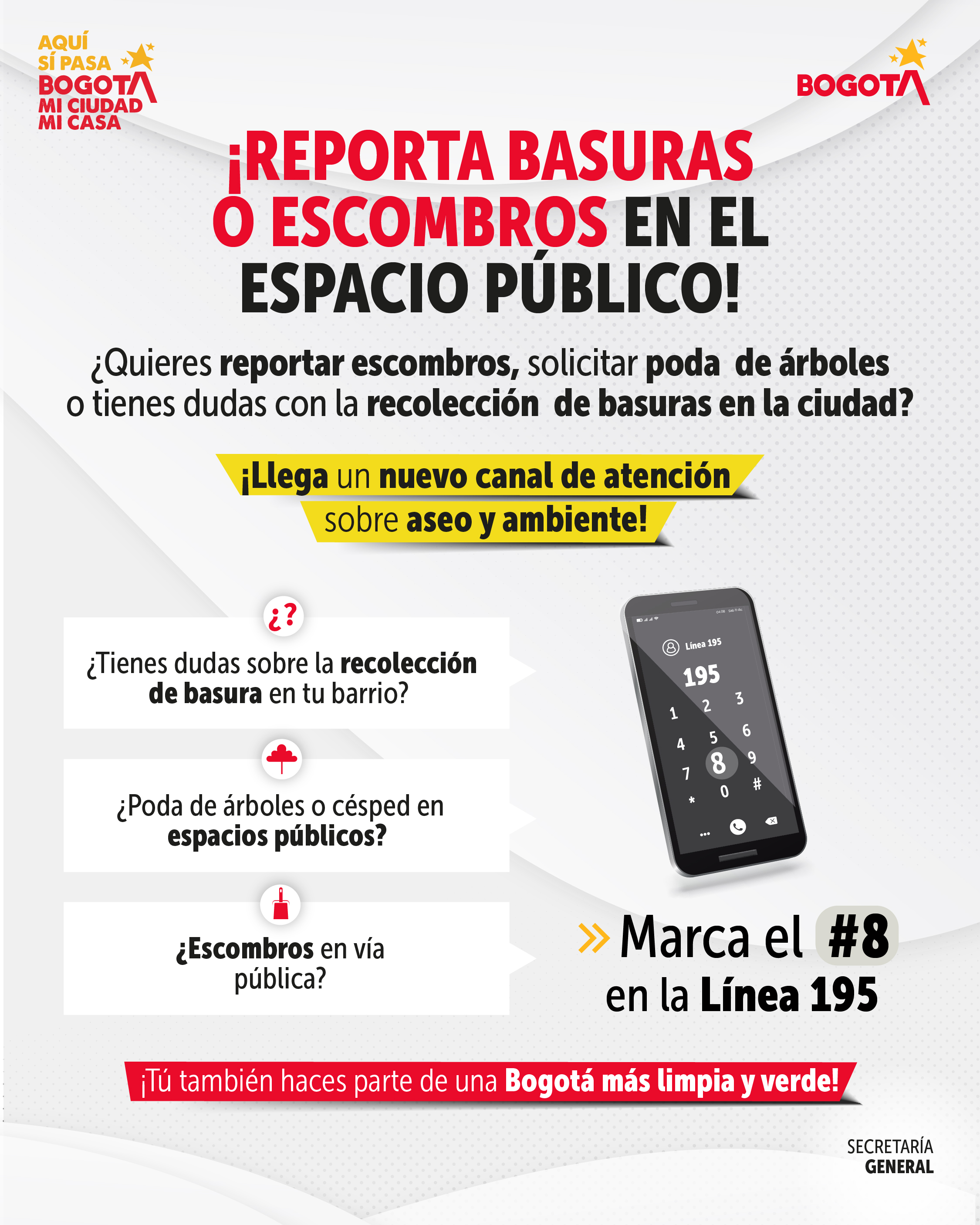 Funcionarias, funcionarios y contratistas podemos sumarnos a esta iniciativa ciudadana y, con una simple llamada, aportar al cuidado del entorno de todos.