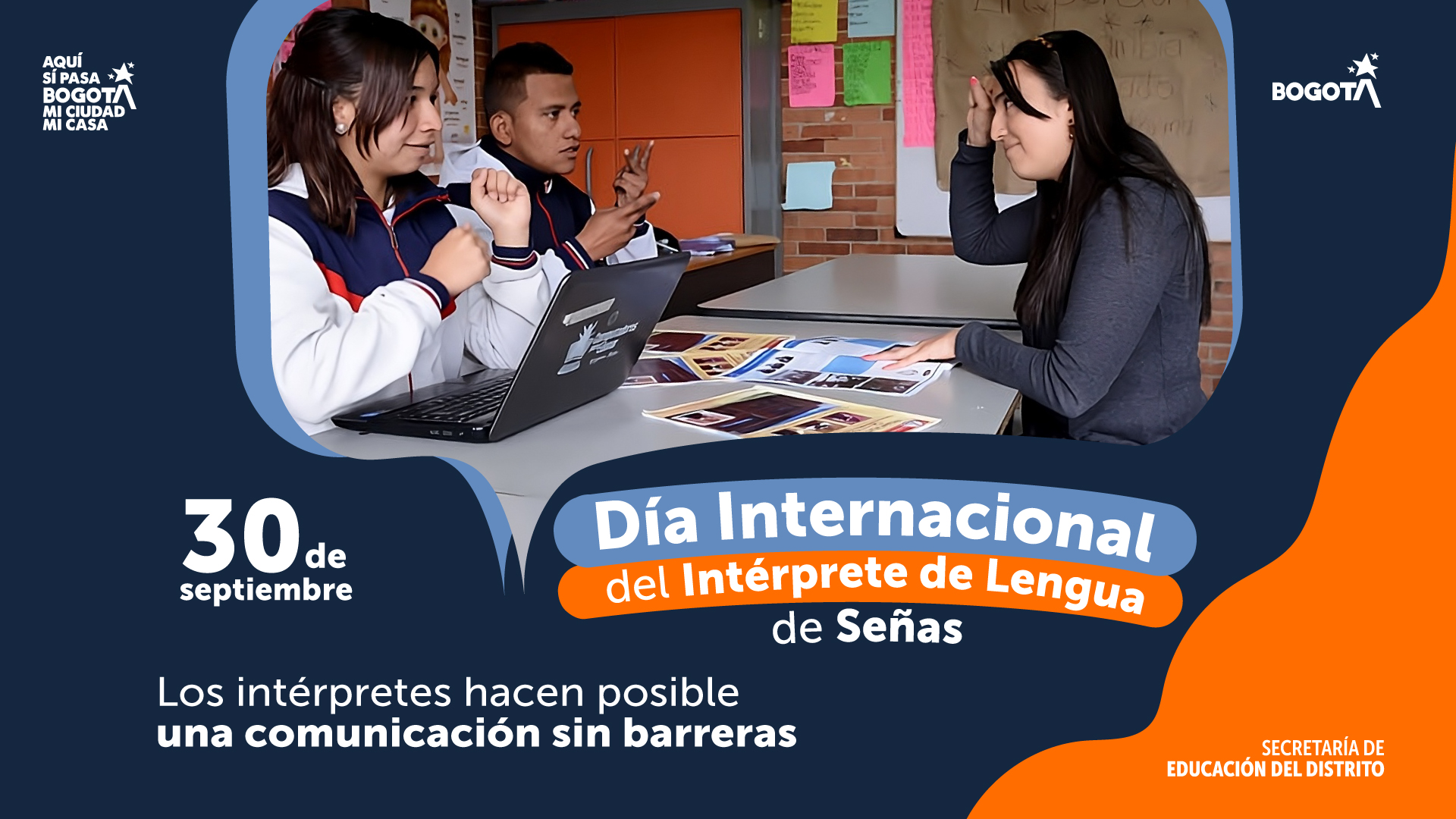 La Secretaría de Educación se suma a la conmemoración del Día del Intérprete de Lengua de Señas Colombiana y resalta la labor de los 70 intérpretes dispuestos en los colegios oficiales de la ciudad.