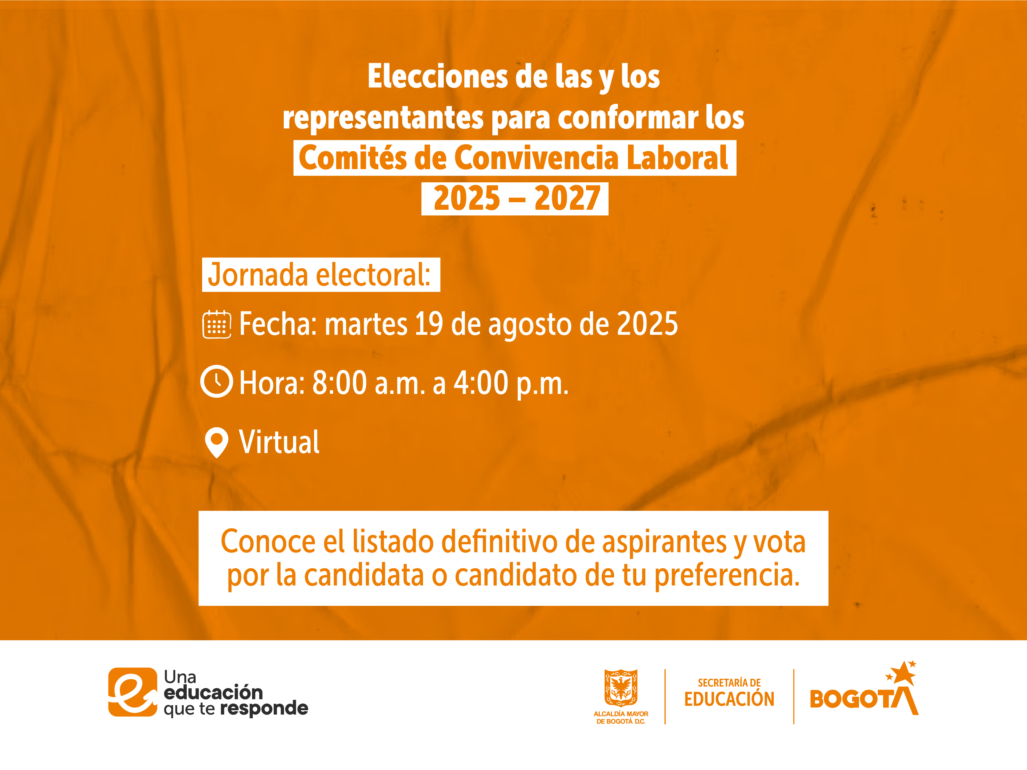 ¡Llegó el día!: vota hoy, martes 19 de agosto, por el candidato o candidata de tu preferencia en las elecciones virtuales para la conformación de los Comités de Convivencia Laboral 2025 – 2027.