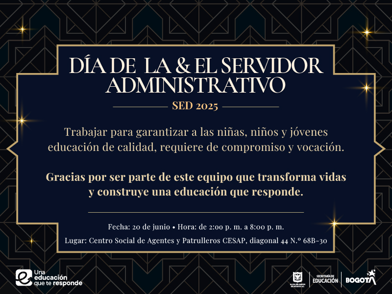 Exaltamos tu compromiso, liderazgo y valioso aporte, haciendo posible que la gestión pública del sector educativo sea eficaz, de calidad y transformadora.