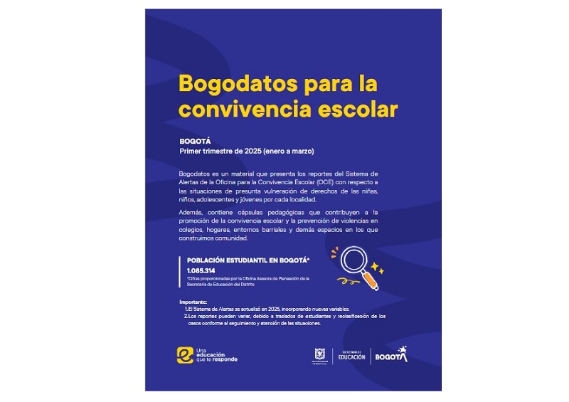 La Oficina para la Convivencia Escolar de la Secretaría de Educación del Distrito, a través del Observatorio de Convivencia Escolar, presenta los datos del Sistema de Alertas correspondientes al primer trimestre de 2025.