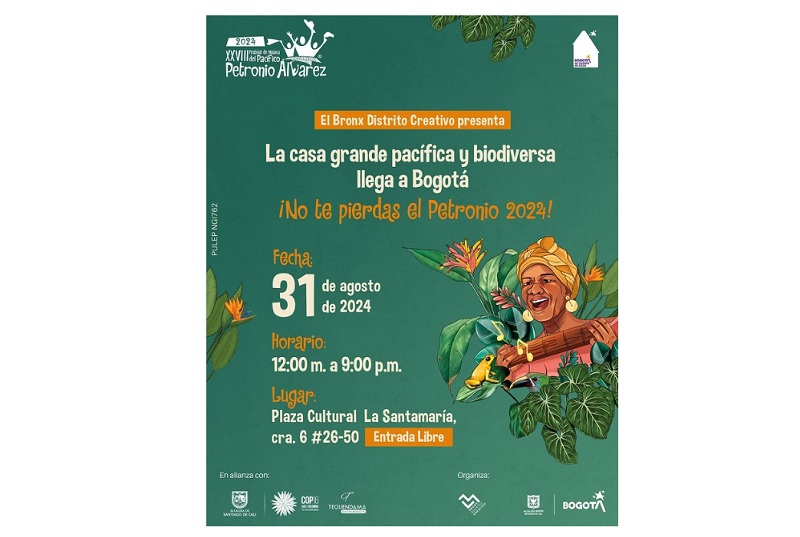 La edición XXVIII del Festival Petronio Álvarez rinde homenaje a la herencia afrocolombiana. Prográmate con este Festival el próximo sábado 31 de agosto, de 12:00 m a 9:00 p.m. en la Plaza Cultural La Santamaría. Entrada libre.
