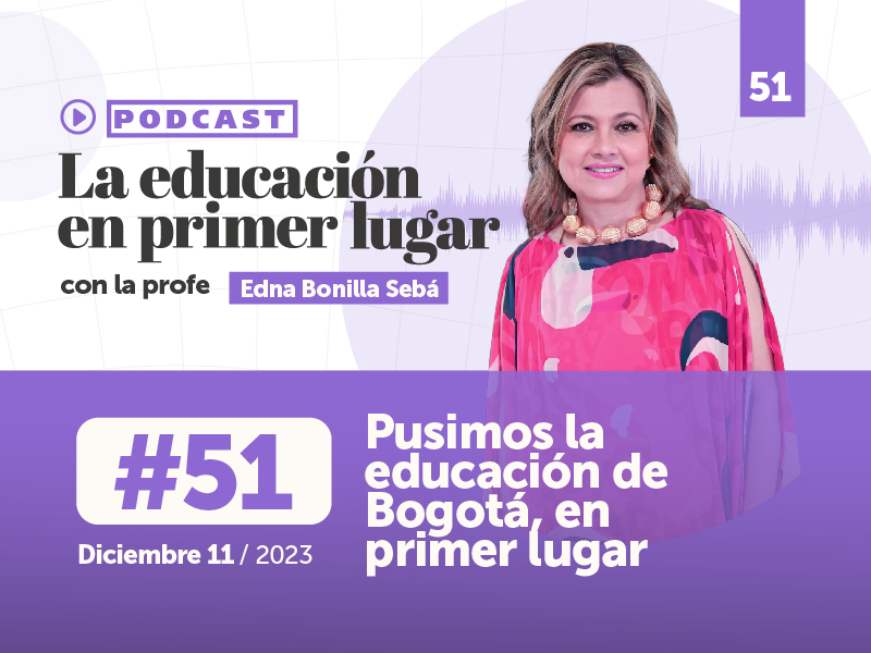 Soy Edna Bonilla Sebá, hasta hoy, secretaria de Educación del Distrito. Y, con mucha nostalgia, pero a la vez mucha felicidad por los retos cumplidos, les doy la bienvenida a este último capítulo de nuestro podcast La educación en primer lugar.