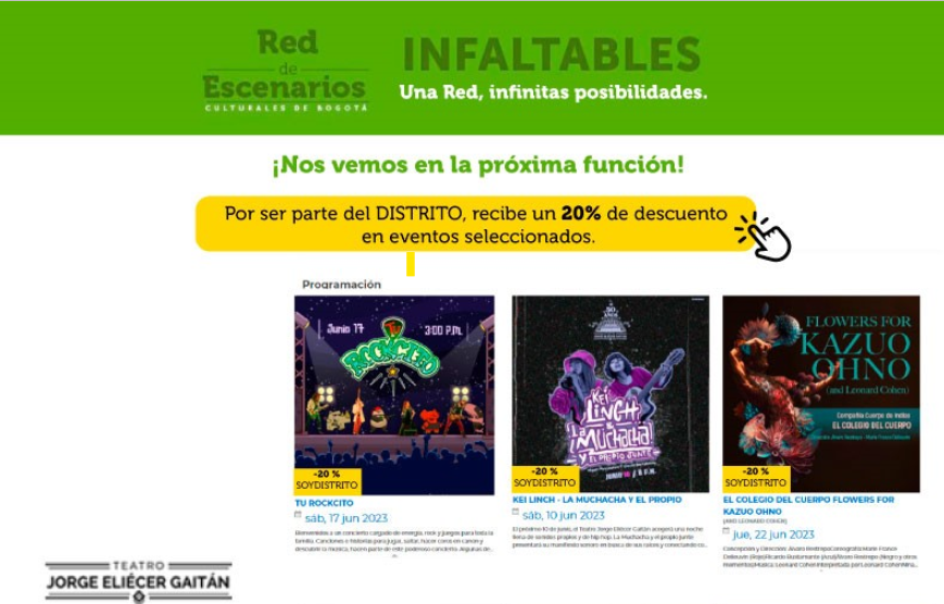 En la Red de Escenarios encontrarás el Teatro Jorge Eliecer Gaitán, Teatro el Ensueño y el Planetario de Bogotá en los que se presentarán más de veinte funciones y shows culturales.