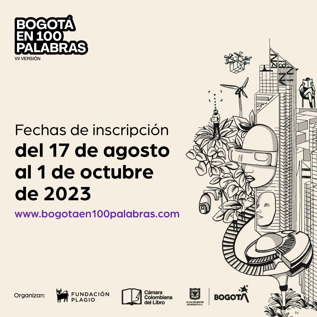 La convocatoria estará abierta desde el jueves 17 de agosto hasta el domingo 1º de octubre del 2023. Los interesados pueden inscribirse y enviar hasta dos relatos a través de la plataforma www.bogotaen100palabras.com.