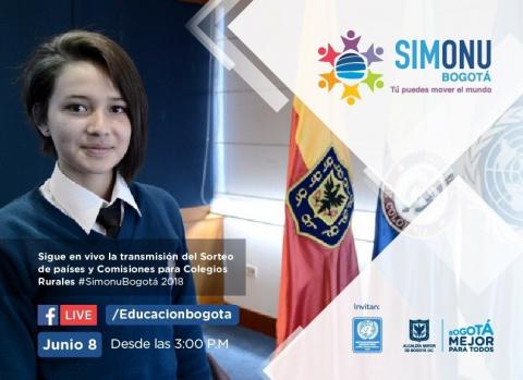 Este viernes 7 de junio se llevará a cabo el sorteo de países y comisiones para los colegios rurales que participan en la sexta versión de Simonu Bogotá. Siga la transmisión de Facebook Live a partir de las 3 de la tarde a través de /Educación Bogotá.