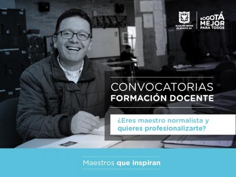 En el marco del Plan de Desarrollo 2016-2020 ‘Bogotá Mejor para Todos’ y del programa ‘Bogotá reconoce a sus maestras, maestros y directivos docentes líderes de la transformación educativa’, la Secretaría de Educación invita a maestras y maestros normalistas de los colegios oficiales del Distrito a inscribirse en esta convocatoria de profesionalización, que estará abierta hasta el 27 de mayo.