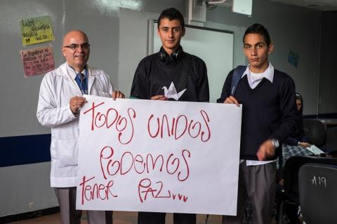 Esto lo comparte el estudiante Kevin Contreras, de grado 11º del colegio Usaquén: “Con la paz cambiamos nuestro mundo, ya que tenemos el poder de ser mejores personas y vivir en armonía. Debemos ser actores y líderes que luchan por la paz y la justicia de este país".