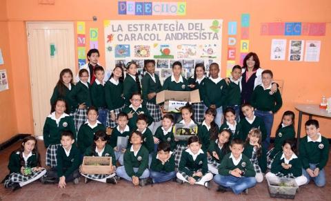 Pequeños, gelatinosos y de paso sosegado. Así son los caracoles, aquellos familiares de los pulpos que, aunque gozan de poca popularidad entre la mayoría de las personas, tienen en Bogotá un fortín de fieles protectores que los llenan de cuidados y afecto. Se trata de los estudiantes de primaria del colegio Andrés Bello quienes, aseguran, ahora son mejores seres humanos gracias a sus amigos los invertebrados.