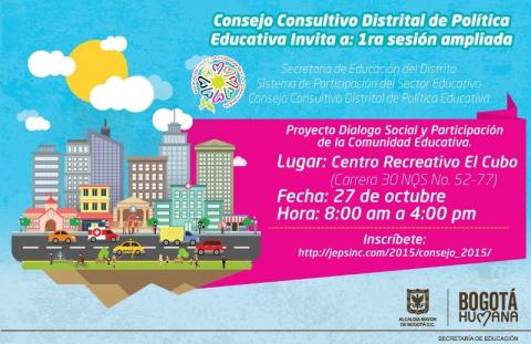 Recordemos que el Consejo Consultivo Distrital de Política Educativa -CCDPE-, es la máxima instancia consultiva del Distrito Capital en el sector educativo, cuyo objeto es la discusión, el análisis y la construcción de recomendaciones y propuestas relacionadas con el diseño y desarrollo de la Política Pública Educativa Distrital.