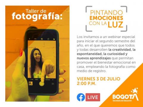 Emociones que circulan alrededor de los registros fotográficos, estilos y formatos, recomendaciones para tomar imágenes en casa vinculando la familia, así como tipos de fotos que se pueden hacer en el asilamiento preventivo obligatorio, hacen parte de este webinar-taller diseñado por la Secretaria de Educación.