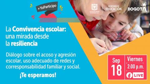 Este viernes 18 de septiembre, únase a nuestro Facebook Live para dialogar sobre la prevención del acoso y la agresión escolar, el uso adecuado de redes y la corresponsabilidad familiar y social.