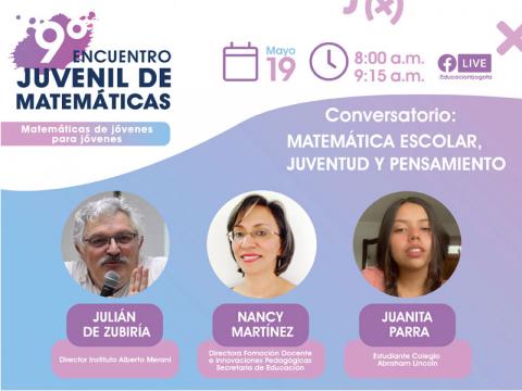 Más de 1200 participantes, 59 colegios públicos y privados y 90 ponencias y talleres con estudiantes de instituciones educativas públicas y privadas nacionales e internacionales, harán parte de la novena edición del Encuentro Juvenil de Matemáticas que se llevará a cabo el 19 de mayo de manera virtual entre las 8 de la mañana y las 3 de la tarde.