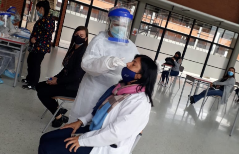 La toma de pruebas PCR a estudiantes mayores de 18 años, docentes, directivos docentes, administrativos y personas de servicios generales y seguridad inició el 11 de marzo y se realizará en todos los colegios que se van sumando a la reapertura.