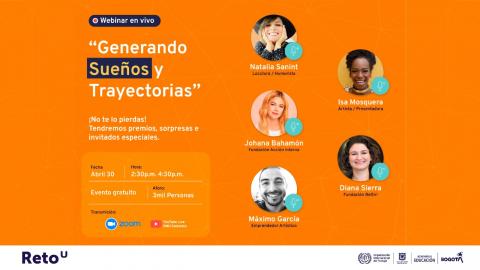El encuentro también contará con la participación de Isa Mosquera, artista y presentadora, y de Natalia Sanint, locutora y humorista. Asimismo, participarán estudiantes beneficiarios de #RetoaLaU, quienes contarán sus experiencias en este programa de inmersión. Al final, se invitará a los asistentes a sumarse a la red de talentos de Jóvenes a la U.