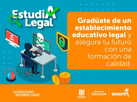 La Secretaría de Educación del Distrito (SED) invita a la ciudadanía en Bogotá a conocer la campaña ‘Estudia Legal’ que adelanta la entidad para evitar que las personas sean víctimas de engaños por parte de quienes se presentan ante el público como si contaran con autorización legal para prestar el servicio público educativo, pero son instituciones que roban dinero y sueños.