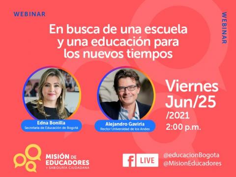 En esta ocasión, la reflexión se centrará en los retos, transformaciones e innovaciones de la escuela y la educación para afrontar los nuevos tiempos que vivimos a raíz de la pandemia por covid – 19. Los invitados a este diálogo, grandes conocedores del sector educativo, son la secretaria de Educación del Distrito, Edna Bonilla Sebá y el rector de la Universidad de los Andes, Alejandro Gaviria.