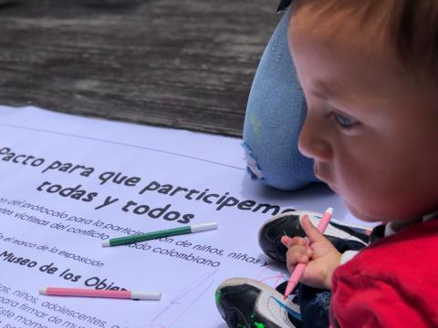 El ‘Pacto de implementación para la participación de niños, niñas y adolescentes víctimas del conflicto armado en Bogotá’ busca garantizar y promover mecanismos de participación desde el enfoque diferencial, enfoque de género y enfoque de derechos, para posibilitar espacios de expresión a partir de lenguajes artísticos y desde las narrativas, con el fin de contribuir a la reparación simbólica de la niñez en Bogotá.