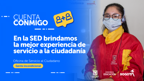 La Secretaría de Educación del Distrito, desde su Oficina de Servicio al Ciudadano, lanza la campaña ‘Cuenta conmigo, gente incondicional’, un compromiso de la Entidad con la ciudadanía de la Capital, que se reafirma a través del esfuerzo diario de un recurso humano que trabaja comprometido, día a día, para brindar la mejor experiencia de servicio en la atención de las solicitudes y trámites a través de los canales de atención presenciales y no presenciales de la Entidad.
