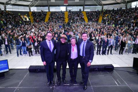 · En el Palacio de los Deportes, la alcaldesa Mayor, Claudia López; el secretario de Educación (e), Carlos Alberto Reverón, y el gerente de la convocatoria desde la Comisión del Servicio Civil, Iván Fernando Enríquez, dieron la bienvenida a más de 6.800 maestros y maestras que harán parte de la planta docente del Distrito en 2024.