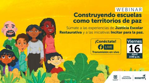 En este espacio de conversación se explicará en qué consisten las estrategias Justicia Escolar Restaurativa- JER e Incitar para la Paz (Iniciativas Ciudadanas de Transformación de Realidades) para motivar a la ciudadanía a inscribir sus experiencias e iniciativas y lograr que, por lo menos, 120 instituciones educativas también sean territorios de paz.