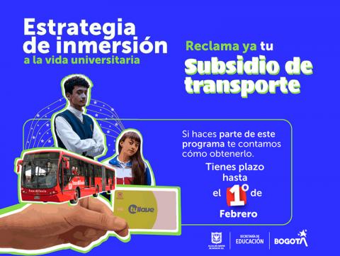El Distrito invita a estudiantes que participaron de la estrategia de ‘Inmersión a la vida universitaria’ durante el 2023, a que reclamen su auxilio de transporte para cubrir los costos en los que incurrieron para trasladarse a las universidades. El plazo es hasta el 1° de febrero.