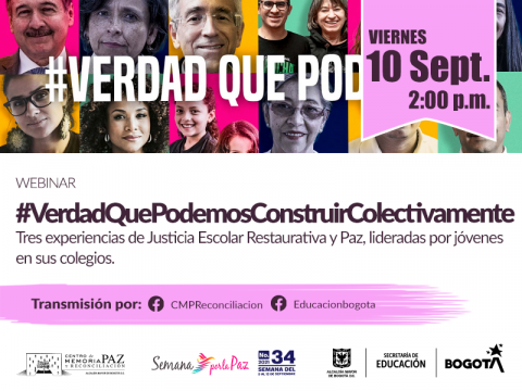 Para ratificar que la paz lo es todo, la Secretaría de Educación y el Centro Memoria Paz y Reconciliación, diseñaron este espacio con el lema ‘Verdad que podemos construir colectivamente’ para dialogar con jóvenes de los colegios de la ciudad, quienes con sus voces promoverán la construcción de paz colectiva en los territorios.