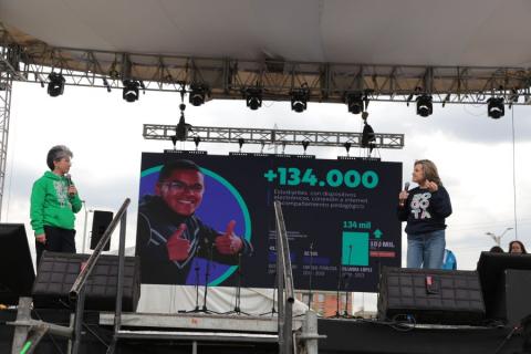 Uno de los aspectos destacados es que en el Plan Distrital de Desarrollo se propuso la entrega de 100 mil dispositivos y la administración logró superar de lejos esa meta. “Hoy le decimos a Bogotá que 134.507 jóvenes de secundaria están conectados y tienen acceso al computador o a una tableta para educarse. En la ruralidad, les entregamos sus computadores y les arreglamos la conectividad en su colegio”, indicó la profe Edna Bonilla.