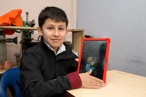 Su alegría y la de doña Celmira, su mamá, tenía que ver con una noticia que habían recibido dos días antes: Juan Diego, de grado octavo, era uno de los estudiantes beneficiados en Bogotá con la entrega de una tableta y conectividad a internet.